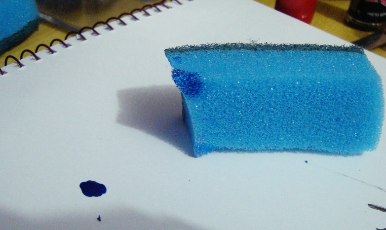 2º passo: Você vai pingar sobre o papel, a cor Royal da Impala. Depois que já estiver seca sua unha, você molha a esponja levemente com o esmalte azul, e vai passando na unha (não passa na unha inteira se não vai ficar tudo azul e estranho) com cuidado, a forma que você vai passar é aleatória. Vai ficar mais ou menos assim: